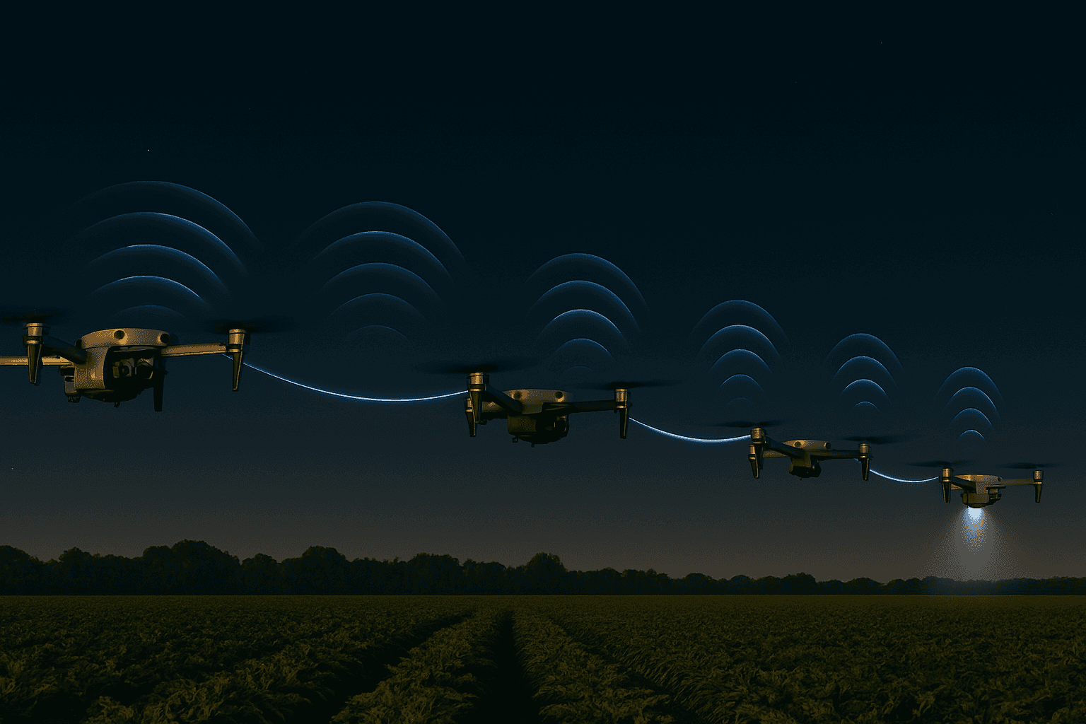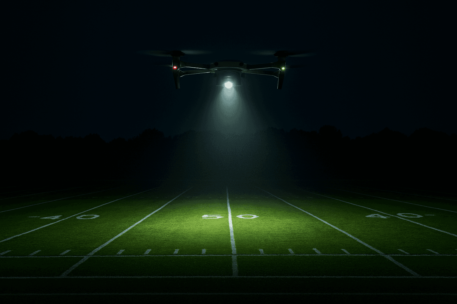 Aerial lighting drones replace bulky towers with fast, expansive illumination across tens to hundreds of acres.