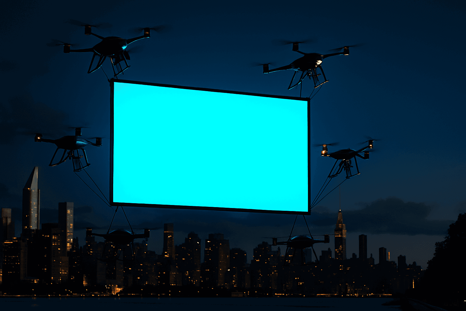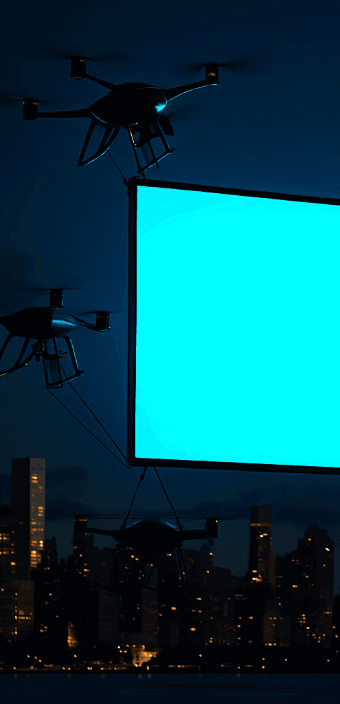 High-altitude drones support massive screens or banners, delivering instant, mobile visual information on demand.